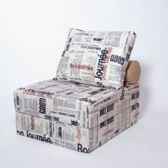 Кресло обтянуто мебельной тканью или искусственной кожей, каркас-дерево, боковины выполнены в виде криволинейных деталей, образующих ножки-опоры, материал боковины фанера. На боковинах имеются мягкие подлокотники. Модель с выдвижной подножкой.